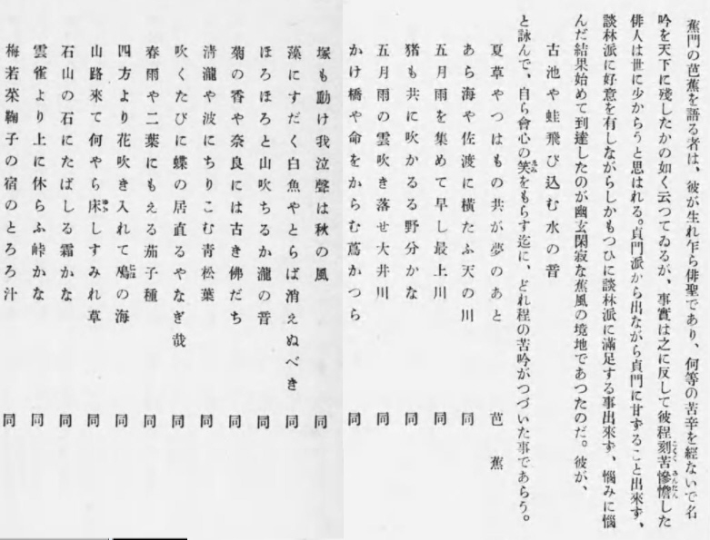 ⓴古池や蛙飛び込む水の音 ❶矢野と同 社会教育会 「編俳句を作る人のために」 1934年(昭和9年)