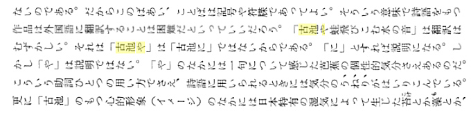 一つの文書に「ふるいけやかわずとびこむみずのおと」の表記が6個出てきます。著者が気まぐれで表記を変えているのではなく、引用する文書の表記を忠実に記載したためです。正岡子規、幸田露伴と「春の日」、「七部集」の表記が使われており平成の表記の使用状況がわかります。