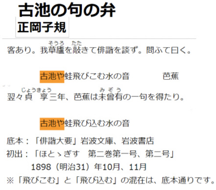 正岡子規 古池の句の弁 -あおぞら文庫 | |