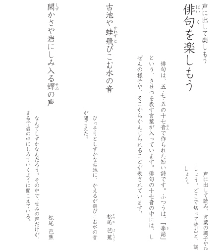 | 古池や蛙とび込むみづの音 |