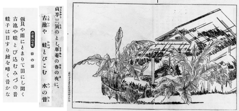 | 古池や蛙飛びこむ水の音 | ❻子規 | 1898年 明治31年 |