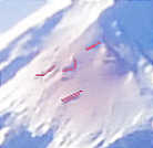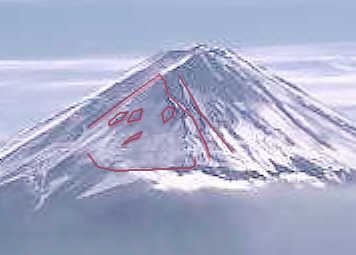 日差しが左上からあたり吉田大沢を境に陰影が生じます。 秀麗な富士山