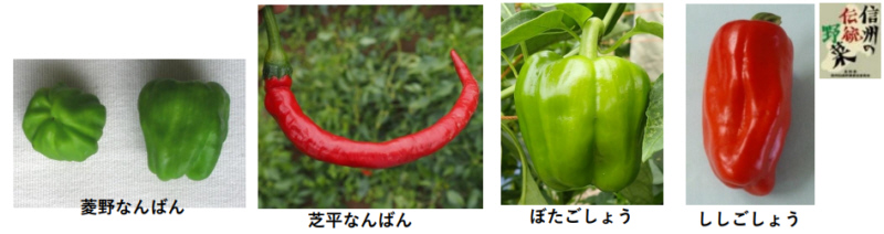そのこしょうが、昔から伝統的に受け継がれてきました。信州では「こしょう」の生産地が多くあり、「そら南蛮」「ひしの南蛮」「ぼたんこしょう」「ししこしょう」は信州の伝統野菜として認定されており、「おいしい信州ふーど(風土)」としても認定されています。