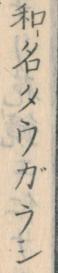 大まかな調査で出てきた「トウガラシ」を記載した最も古い史料。「白芥」に「多宇可羅志(=タウカラシ)」が付いています。