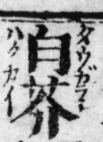 大まかな調査で出てきた「トウガラシ」を記載した二番目に古い史料。「白芥」に「タウカラシ」の振り仮名が付ています。
