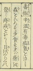 | 丹波頼理 輯 ; 山澄延年 校訂「本草薬名備考和訓鈔」 1831年(天保2年) |