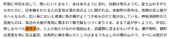 1693年に松尾芭蕉が「青くても有るべきものを唐辛子」 で「唐辛子」使った後の100年後に再び「唐辛子が出てきました。俳句と狂歌の関連でしょうか。