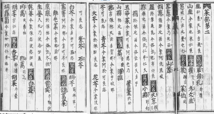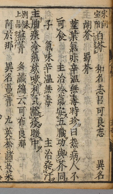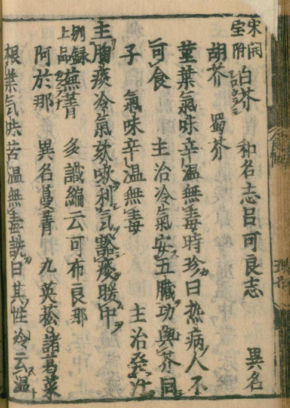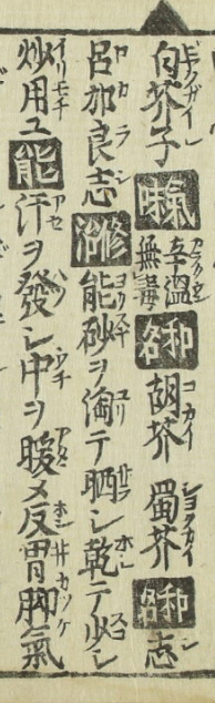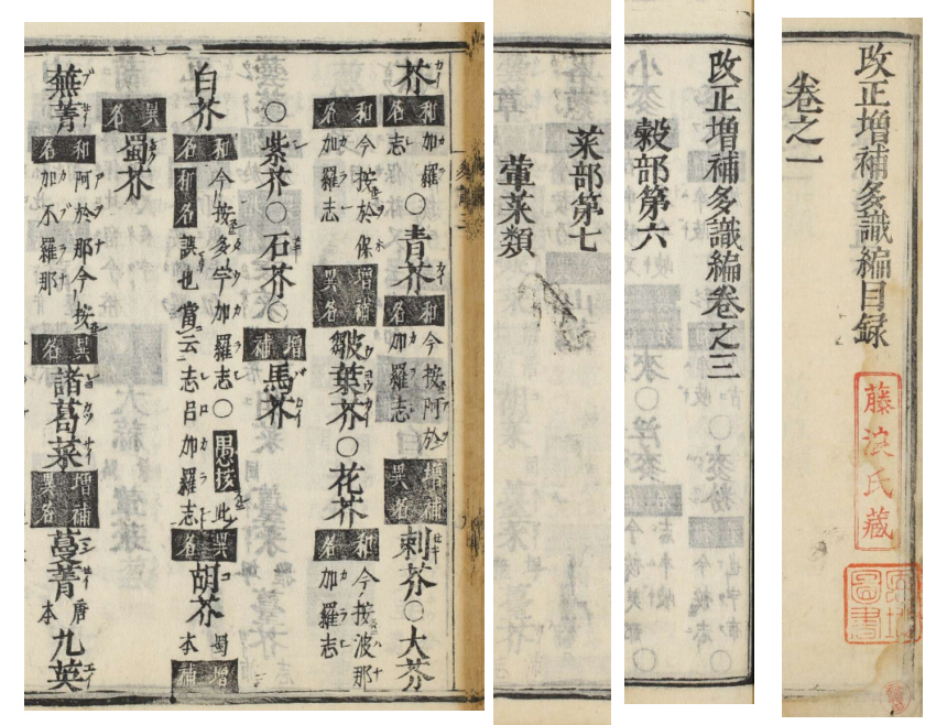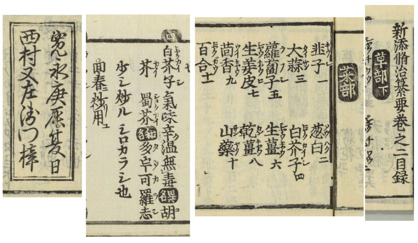 1642年(寛永19年)と同じ版板で発行年だけ変更追加したか。 そのため「白芥 (タウカラシ)」