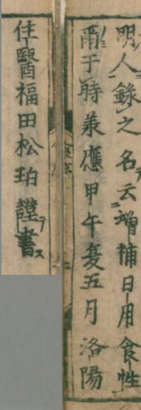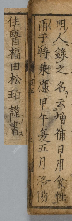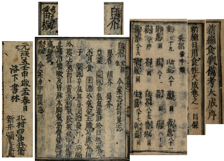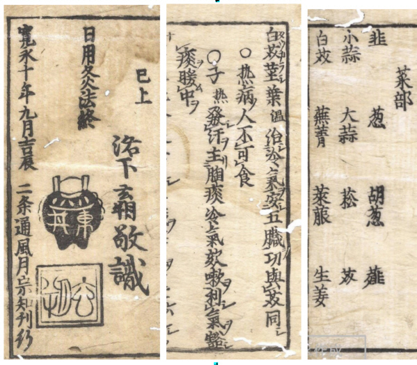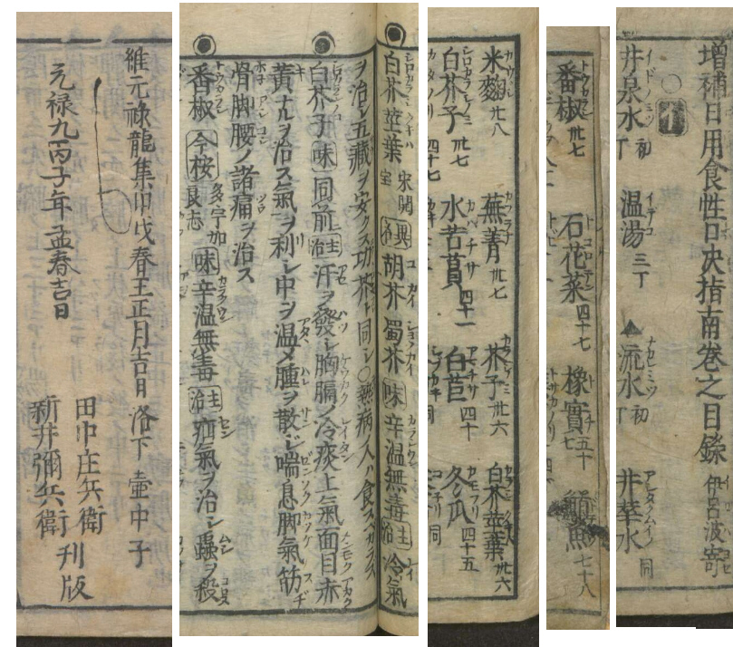 1654年(承応3年) 福田 松珀著「増益日用食性」と同じ整版か。最終頁の元禄三年の年号だけは追加