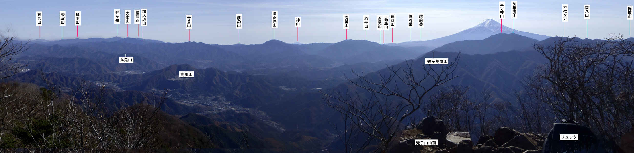 滝子山山頂からの富士山 パノラマ図 2013年11月24日 12時23分