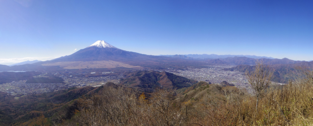 ![]() ![]() ■9:00 よく見えるところでこのぐらい ![]() ■9:07 鉄塔と富士山と南アルプス。 ![]() ■9:29 49分で大 左の道は不動の湯からの道です。 ![]() ■9:29 山中湖方面の山 ![]() ■9:58 杓子山へ進みます。 ![]() ■9:59 青い空にマユミ(檀、真弓、檀弓)の赤が鮮やかです。 相棒さんがマユミというので、マユミの花と思ったのですが、マユミの花は夏に咲きます。この写真は、その花が秋に実となり、熟して赤い種子が飛び出している状態とのこと。 マユミは材質が強い上によくしなる為、古来より弓の材料として知られ、名前の由来になった。この木で作られた弓のことや、単なる弓の美称も真弓という。 ![]() ![]() ■10:04 富士山が見えてきました。雲はかかっていません。前日に忍野八海に泊まった甲斐がありました。 ![]() ■10:23 頂上手前では、富士山の右の方が樹木で隠されてしまいます。 ![]() 杓子山山頂 ■10:30 杓子山山頂からの富士山がいる大展望。 富士山山頂から16㎞にある標高1597mの杓子山から眺める富士山です。富士山と杓子山の間に視界を遮る山は無く、富士山の左のすそ野の奥に愛鷹山、右のすそ野の奥には毛無山が見えます。富士山を丸ごと眺める絶景です。 ■10:33 杓子山山頂からの富士山がいる大展望。左右の杓子山山頂部をカットします。 ■10:33 富士山を中央にして。壁紙用。 ■10:33 富士山を右側において山中湖。 ■10:33 富士山を左側において南アルプス。 ■10:34 富士山が中央 ![]() ■10:34 拡大。望遠レンズで冠雪部の陰影を写します。 ![]() ■10:34 富士山山頂部。 ![]() ■10:34 富士山山頂の冠雪。 ![]() ■10:35 冠雪部の陰影がある富士山の全体図 ■10:40 杓子山山頂「天空の鐘」と富士山 ![]()
