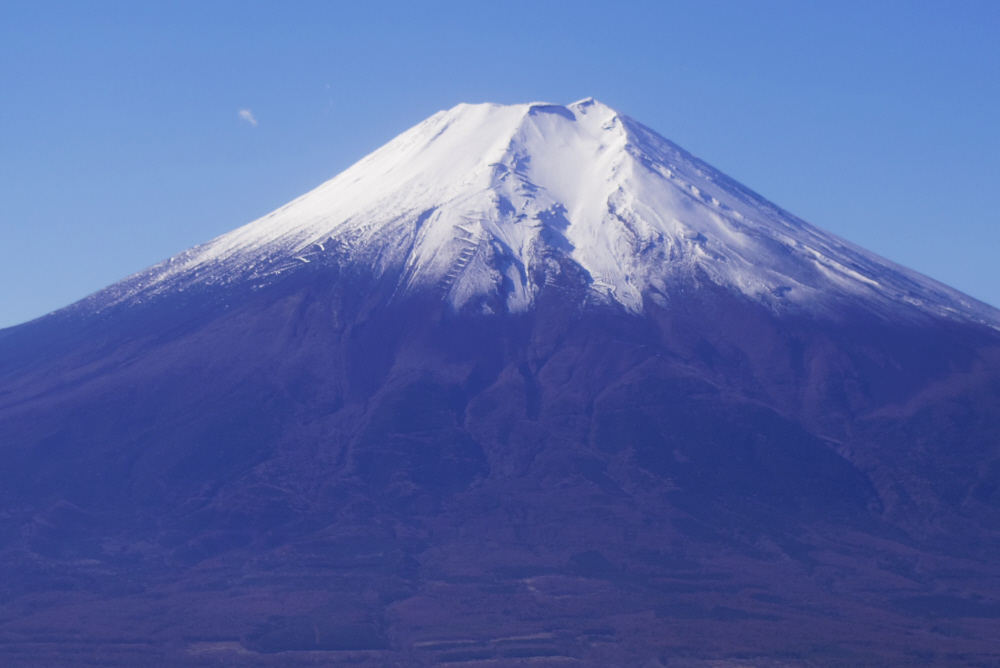 ■6:22 宿「レイク忍野」から、白い靄の中を出発。 ■6:23 富士山が靄の中から頭を出しています。 ![]() ■6:29 バス通りの役場前を左に曲がり振返ると、富士山の全貌が見えてきました。空には雲はひとつもありません。この後、富士山のすそ野の靄も取れていきそうです。 ![]() ■6:30 進行方向にこれから登る山並みが見えます。画面中央が高座山でその右側が杓子山、子の神。 ![]() ■6:31 富士山に陽が当たり始めました。 ■6:31 富士山の山頂が黄金色に染まりました。 ![]() ![]() ■6:35 この先を左に曲がります。 ![]() ■6:37 「高座山」への行き先表示板がないようです。黄色の「民宿かやの→」看板の右側の道へ進みます。この道は、最初に来た時、住民の方が親切に車を止めて教えてくれました。 ![]() ■6:45 道の左側に富士山がいます。 ![]() ■6:46 道の左側にいる富士山が最もよく見えたところ。まだ黄金色に染まっています。 ![]() ■6:56 役場前から28分で鳥居地峠(とりいちとうげ)に到着。 ![]() ■7:15 鳥居地峠から11分で「これより杓子山登山コースです」の表示板が出てきます。 ![]() ■7:25 富士山が見えてきました。 ![]() ■7:28 富士山のほぼ全体が見えてきました。朝方の靄は左側に少し残っていますが、快晴の空の下で、富士山が美しい。 ■7:28 登る道の先に高座山頂上が見えます。登山道の右側は前面カヤトの原になっています。この道を登りながら、時々振返り富士山を眺めます。振返る時間が長くてなかなか上に進めません。2014.10.24に登ったときはカヤトは、黄金色に輝いていましたが、今日のカヤトは落ち着いたからし色です。 ![]() ■7:29 高座山の下の方では、紅葉もまだ残っています。青空の下に富士山。 ■7:33 カヤトの原も美しい。 ![]() ■7:34 ここからの富士山がすばらしいのでレンズ交換をしてじっくり撮影。 ■7:36 カヤトの原を前景にして。 ![]() ■7:36 拡大 ![]() ■7:37 望遠レンズで撮影。冠雪の陰影が出てきます。 ![]() ■7:37 拡大 ![]() ■7:38 もう一枚 ■7:40 こんなかんじで登る途中の数か所で撮影。登る時間より、撮影時間の方が多い。 ![]() ■7:47 少し登って富士山 ![]() ■7:47 相棒さんは一所懸命(いっしょけんめい)に急な坂道を登っています。このところ、「一生懸命(いっしょうけんめい)」が使われることが多いようですが、ここでは「一所懸命」。登山道が白く凍っているので助かりました。これが溶け出すと、どろどろの滑る坂道になり、登るのに三倍ほど苦労します。 ![]() ■7:52 登山道の多くの場所で立ち止まって撮った写真は同じようですが、前景が少しづつ変化していきます。。 ■7:59 カヤト中央部の上に富士山が居ます。 ■8:08 高座山で、最も左右の景観が開けた所です。富士山の右側のすそ野の上に南アルプスが見えます。 ![]() ■8:08 中央部を拡大 ![]() ■8:10 最後の登り ![]() ■8:17 頂上手前まで登り、登ってきた登山道を眺める。 ![]() ■7:17 山頂近くの展望地から富士山を眺める ![]() 高座山山頂 ■8:22 高座山山頂到着。標高1304.4m。木々の後ろは富士吉田町。 ![]() ■8:22 2014.12.23に登ったときに比べ、見晴らしが格段に良くなってます。2014年のときは富士山は山頂部しか見えませんでした。一本の木を残してほかの木々をすべて伐採したようです。 ![]() ■8:32 見晴らしが良くなった山頂部で、私の70歳と20日を祝して、快晴の空の下で富士山と記念撮影。 相棒さんは腹が減ったといって、おにぎり一個 ![]() ■8:40 高座山から杓子山に向けて出発。それから6分後の登山道。 ![]() ■8:47 ゴジュウカラとアトリ 相棒さんは、このところ鳥撮影に熱心です。花が無い季節は「富士山と鳥さん眺めて山歩き」 ゴジュウカラ(五十雀)は、スズメ目ゴジュウカラ科ゴジュウカラ属に分類される鳥類 平地から山地にかけての落葉広葉樹林に生息する。木の幹に垂直にとまり、頭部を下にして幹を回りながら降りる習性がある。 相棒さんの鳥の写真で、鳥にも表情があることを知りました。 ![]() ![]() アトリ(獦子鳥、花鶏、学名:Fringilla montifringilla)は、鳥綱スズメ目アトリ科アトリ属に分類される。眼がはっきり写っていないと表情がわからない。