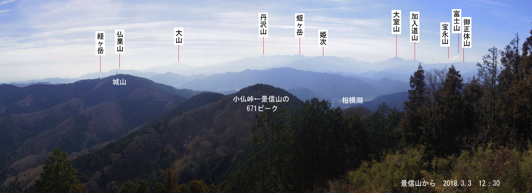景信山からの富士山がいる大展望 2018年3月3日 12:34
