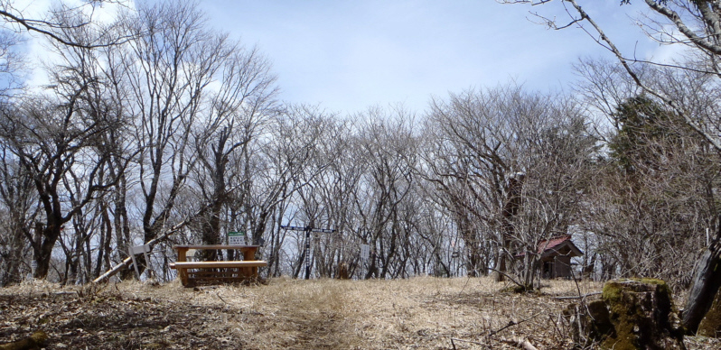 ■5:35 小田急江ノ島線長後駅発。 ■7:37-8:10 富士急行線都留市駅着。道坂隧道へバス出発。 ![]() ■8:40-50 道坂隧道着。出発。 道坂隧道からの登山は今倉山が殆どで、御正体山への登山者は少ないようです。登山口の案内板にも、実正体山は(至 御正体山)と書かれているだけで、途中の登山道は書かれていません。 ![]() ■8:58 今倉山・御正体山分岐、右の御正体山へ進みます。 ![]() ■8:58 今倉山・御正体山分岐で撮影する登山者を眺める執筆者ですが、相棒さんがなぜこの撮影をしたかは不明。 ![]() ■9:05 アケボノスミレ(曙菫) 今回の写真撮影は相棒さんですので、花の写真が多い。今倉山を登る登山道もスミレが多く咲いていたが、こちらの尾根もスミレが多い。同じ尾根だから当然です。 スミレの種類は多く、同定が難しいので、種類がわからないスミレは「スミレ」と記載。 ![]() ■9:18 三角点の標識。一八・・(m)。登山地図に1822mのピークがあるので、ここが1822mか。 ![]() ■9:21 スミレ。 ![]() ■9:22 登山道を進む私。 ![]() ■9:23 登山道の左後ろを眺める。登山道の左下は、道志みち。その向こうの山は鳥ノ胸山、大界木山などの道志の山々、その奥に大室山、蛭ヶ岳などの丹沢の山々か。 ![]() ■9:33 御正体山の左側に、富士山が現れました。期待してない時に現れる富士山はとてもうれしい。御正体山が富士山と宝永山の輪郭に沿って、白い山体を切り取っています。 松田町にある丹沢山地のジタンゴ山からの富士山と似ています。ジタンゴ山からの富士山は「通好みの富士山」といわれています。ここも、「通好みの富士山展望地」です。 ![]() ■9:33 今倉山・御正体山分岐から岩下ノ丸の間、分岐から43分後に現れた富士山。富士山から宝永山の形状の美しさを鑑賞しなさいというように、白い山体を切り取っています。 ![]() ■9:34 道志の山。 ![]() ■9:42 ここら辺から下っていくと、富士山は御正体山の後ろに消えていきます。1228mのピークと岩下ノ丸の間のピークで富士山が現れて、そこを下ると富士山が消えていきます。 ![]() ■9:53 スミレ。 ![]() ■9:56 岩下ノ丸。岩下ノ頭の別名はケンカ沢ノ頭・ゲンガ沢ノ頭・陣ヶ沢ノ頭・ブドウ沢ノ頭なので、「陣ヶ沢ノ頭」も同じ板に書かれています。 ![]() ■9:56 こちらは「岩下ノ丸」だけの表示板。 ![]() ■10:09 先に進んだ相棒さんが早くおいでと声をかけます。 ![]() ■10:45 白井平分岐。ここを下ると白井平、そこに御正橋バス停があります。 ![]() ■11:30 道志みちに沿って、右から菰釣山、大界木山、加入道山の道志の山々、その奥に左から大室山、蛭ヶ岳、塔ノ岳の丹沢の山々。 ![]() ■11:42 ブナ林の地面にはバイケイソウ。 ![]() ■11:43 御正体山、標高1681mの山頂です。 ![]() ■11:45 御正体山山頂で記念撮影。残念ながら富士山の展望は無し。 手をかけている柱には、御正体山 一六八二m 「山梨百名山」。御正体山の標高は、この時2012年4月29日は1682mでしたが、2014年3月26日の改定で、1681mになりました。私の身長も173pから、ここ十数年で2cmほど低くなっています。御正体山は測定技術の進歩ですが、当方は加齢による劣化です。 「御正体山自然保全地区 この地域一帯は樹令50〜200年生のツガ、モミ、ハリモリ、ミズナラ、ブナ等の針葉樹と広葉樹の混交林の代表的な地域であり、自然状態が良好に保全するため、自然保全地区に指定されています。・・・・」 ![]() ■11:54 健脚の登山者は、ここから石割山へ進みます。 その横に、「平成十六年(2004)十月十五日 皇太子殿下御登頂 御正体山」。今上天皇が登られた山です。 ![]() ■11:57 立派なブナの木が並んでいます。 ![]() ■12:01 峰宮跡へ下る途中で樹木の間から富士山。残念ながら富士山頂は雲で隠れている。壁紙用。 ■12:14 峰宮跡 ![]() ■12:16 少し進むと峰宮跡展望台 ![]() ■12:16 峰宮跡展望台からの富士山。左のすそ野は、双子山まで見えています。