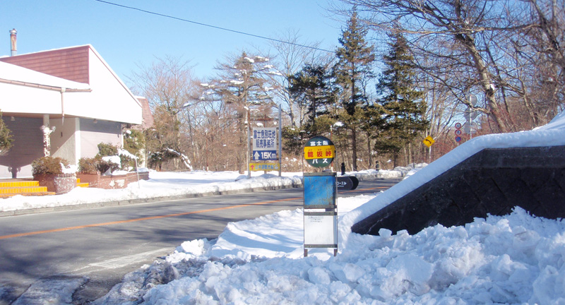 ■9:57 籠坂峠バス停到着 アザミ平へ向けて出発。