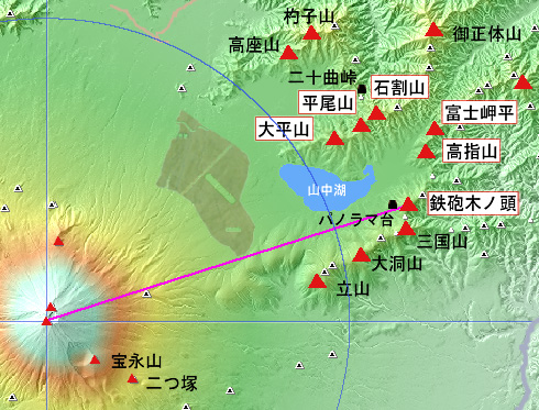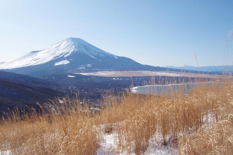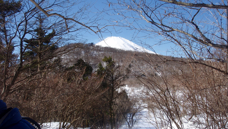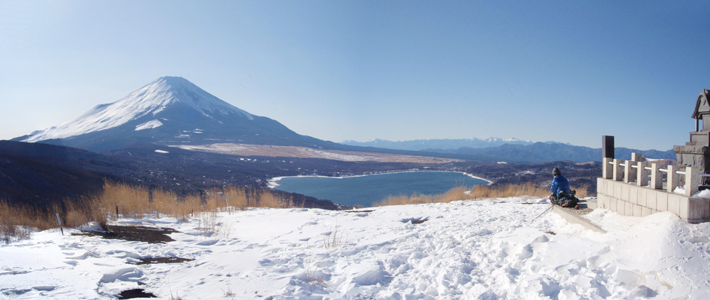■15:09 積雪が多いため展望箇所の確保が難しく、富士山と山中湖を別個に撮影。