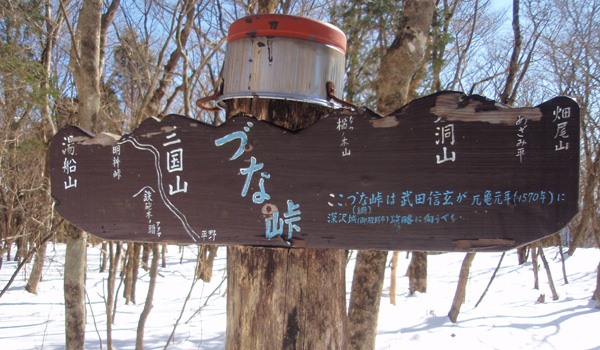 ■今回はづな峠の前にある楢木山は見逃した。2015.7.22に来た時に確認したが、手作りの木の表示柱なので雪に埋もれていたか。