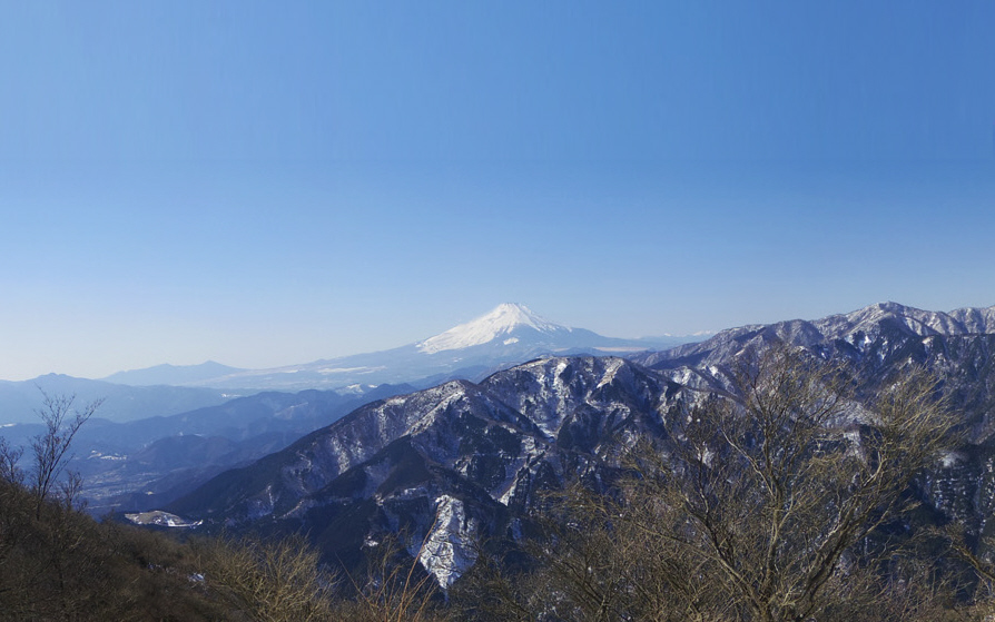 丹沢山地と大山が大渓谷を形成 大山から大渓谷を挟んで富士山を眺める |