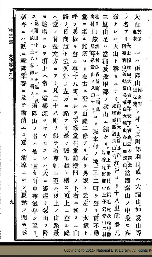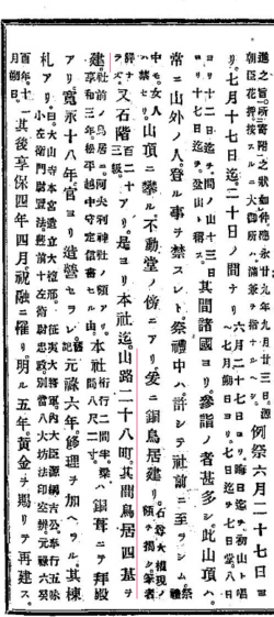 出版者、版元、発行所等: (不明) 出版年、撮影日等:明治11(1878)年8月 大きさ:64.5×48.5cm ページ:1枚 所蔵:個人蔵、産業能率大学提供 解説: 安政大火と神仏分離後の明治の大山 |