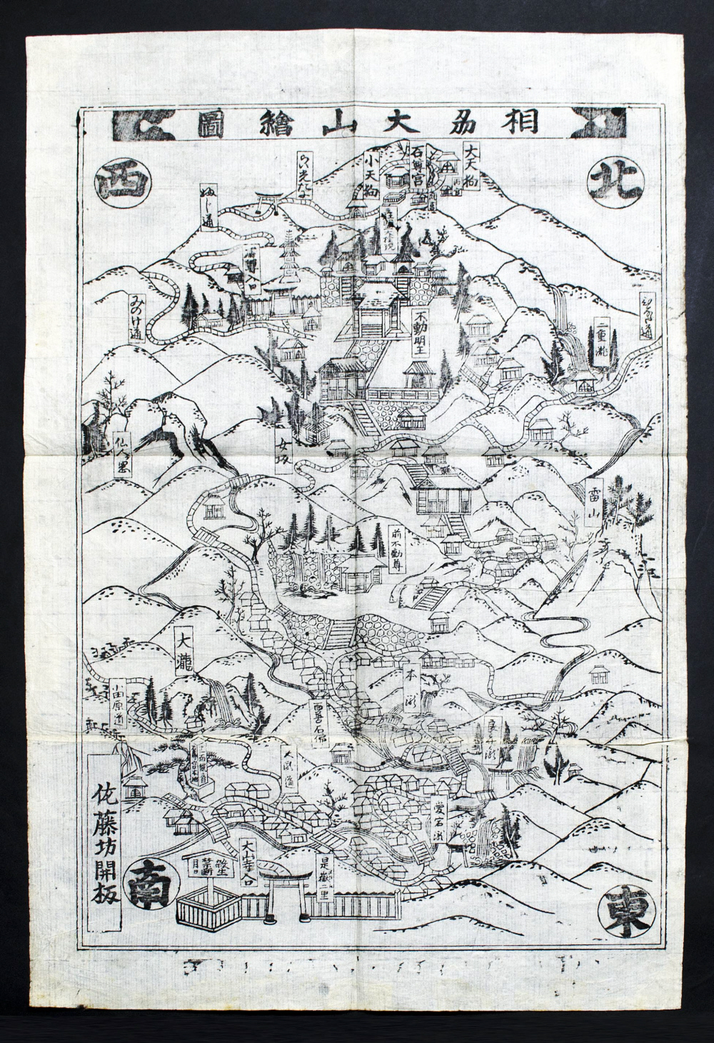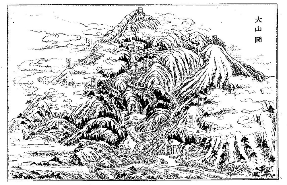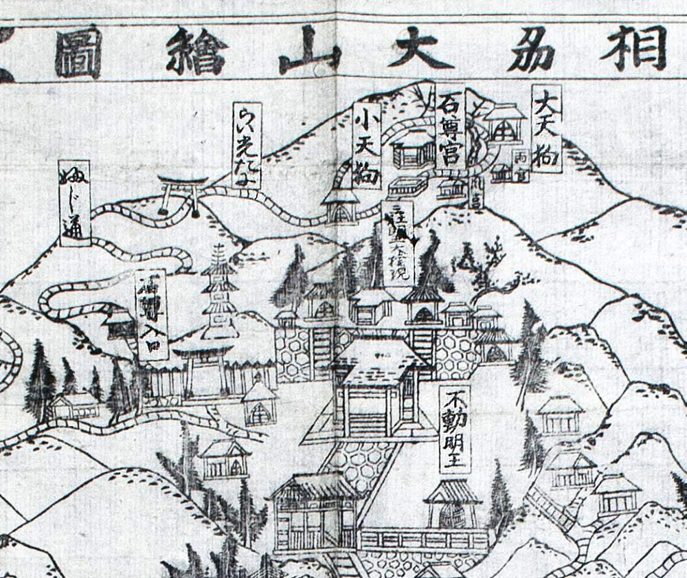 | 作品名:相刕大山繪圖 作者:佐藤坊開板(墨刷) 種別:古地図 時代:江戸時代 位置:全景 |