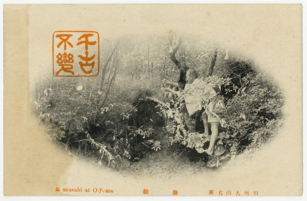 | 作品名 | 『縁結の樹、頂上に至る二十丁目來光谷の傍にあり未婚の男女其戀ふ者の名を記したる紙を小指と栂指にて其樹に結付け其首尾よく結ばるゝを以て願叶へりとす』 |