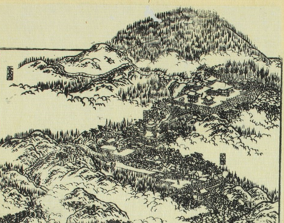 出版者、版元、発行所等:〔不明〕 出版年、撮影日等:嘉永5年頃(1852)年 大きさ:58×36cm ページ:1枚 所蔵:個人蔵、産業能率大学提供 解説:江戸時代の壮大な塔頭の全容様子を伝える |