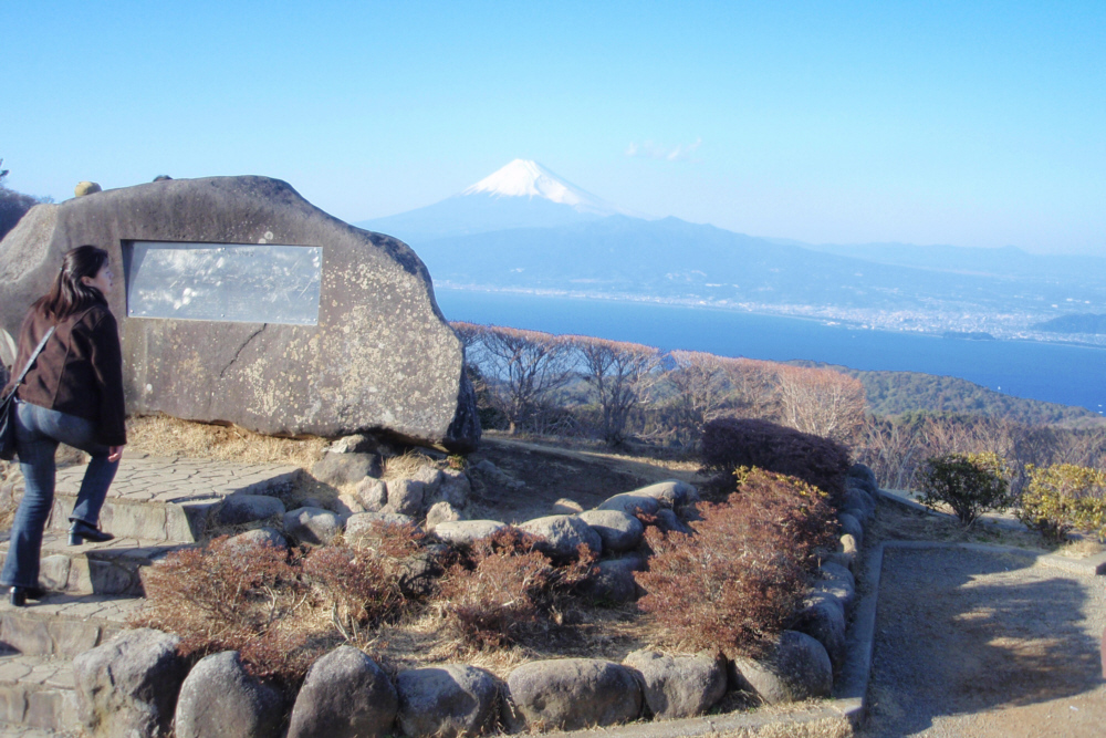 ■15:47 だるま山高原展望台からの富士山と愛鷹山と駿河湾。かすんでいたためか、富士山の両側撮っていません。