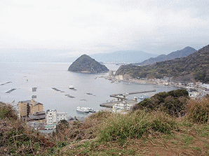■13:29 駿河湾と戸田港の街並。