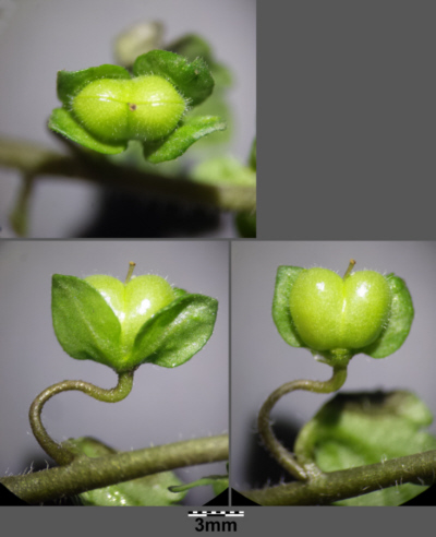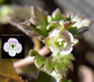 ①発見した植物は「Veronica persica Poir 」 牧野 富太郎がお茶の水で発見した帰化植物をしらべたら、学名が「Veronica persica Poir 」というクワガタ属の植物であることがわかりました。 また、日本の在来種でVeronica persica Poirと同じ分類の「クワガタソウ属」の植物として「イヌノフグリ」があることがわかった。その葉や茎の姿はVeronica persica Poirと似ている。しかし、「イヌノフグリ」の花は淡いピンク色でVeronica persica Poirの花はコバルトブルーで似ているとは思えない。では「イヌノフグリ」の名前の基になった実の形はどうか。 「Veronica persica Poir」を発見した時が春なので、その時は確認できないが、植物書を調べればわかります。1779年発行の植物書にVeronica persica Poirの画像があり、「g」にその実が描かれています。 ![]() Veronica persica Poir., syn. Veronica tournefortii C. C. Gmel. non Vill. 1779, nom. illeg. オオイヌノフグリ-ウィキペディアより引用 『ウィキペディア(Wikipedia)』では、二冊の引用書物を示してオオイヌノフグリの果実はハート型で、犬のフグリに似てはいないとしています。 しかし、上図の実の画像及び上表の実の写真は、両方とも「イヌの陰嚢」に似ていると見えます。 牧野富太郎も、上記した「牧野富太郎 植物記1 野の花1」の図33で「オオイヌノフグリの実(犬のいんのうに似ている)」と書いてますので。「Veronica persica Poir」の実も犬の陰嚢に似ていると確認したと思います。 Veronica persica Poiと「イヌノフグリ」は、実の形も含めて「外見」は似ており、「分類」は界から亜属まで同じ分類になっています。 しかし、それらが似ており、其の姿が「イヌノフグリ」より大きいからといって、それだけで「オオイヌノフグリ」と名付けるとは思えません.。帰化植物に在来種の名前にちなんだ名前を付ける必要はないと思います。 Veronica persica Poirと言われた花のイメージは青い可憐な花が咲き、「オオイヌノフグリ」の名前のイメージは違いすぎます。 ②Veronica persica Poirの別名 「聖ベロニカの花」 Veronica persica Poirは、下記の言い伝えから「聖ベロニカの花」と言われ、花言葉は「神聖、清らか、忠実、信頼」です。 コバルトブルーの清らか花の印象にぴったりです。通常では、Veronica persica Poiの和名に、これらに関する植物名を付けたくなります。