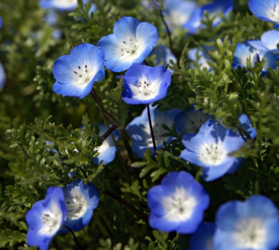 また、「オオイヌノフグリ」に後からつけられた日本の別名に、「瑠璃唐草」、「天人唐草」、「星の瞳」があります。このような名前が、命名する時に何故出てこなかったのか不思議です。 「瑠璃唐草」 江戸時代には帰化植物のことを「唐草」と言ったそうですから、「瑠璃唐草」とは「渡来した瑠璃色の花」という意味。 「瑠璃唐草」は、今ひたち海浜公園みはらしの丘に植えられて人気があるネモフィラの別名でもあります。オオイヌノフグリとよく似ています。分類はムラサキ科です。 葉の形が唐草模様に似ていることから、和名ではルリカラクサ(瑠璃唐草)と呼ばれる。 「オオイヌノフグリ」ではなく「瑠璃唐草」と名付けていたら、この花がひたち海浜公園みはらしの丘を青く染めていたかもしれません。