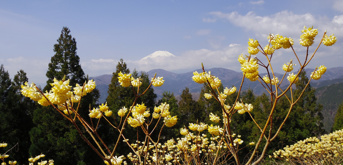 ミツバ岳山頂から ミツマタと富士山 2014年4月1日 10:03
