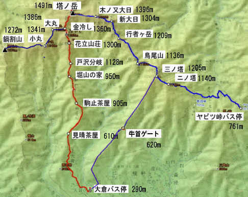 ・標高差444mを91分の山歩きコース。登り:ヤビツ峠-二ノ塔-三ノ塔 91分 下り:三ノ塔-牛首ゲート-大倉バス停 110分(休憩時間含む) ・塔ノ岳表尾根コースの途中の山。ヤビツ峠-二ノ塔-三ノ塔-烏尾山-行者ヶ岳-新大日-木ノ又大日-塔ノ岳 4時間42分(休憩時間含む) ![]() ■富士山と三ノ塔 (大山のヤビツ峠分岐横の展望地から) ![]() |