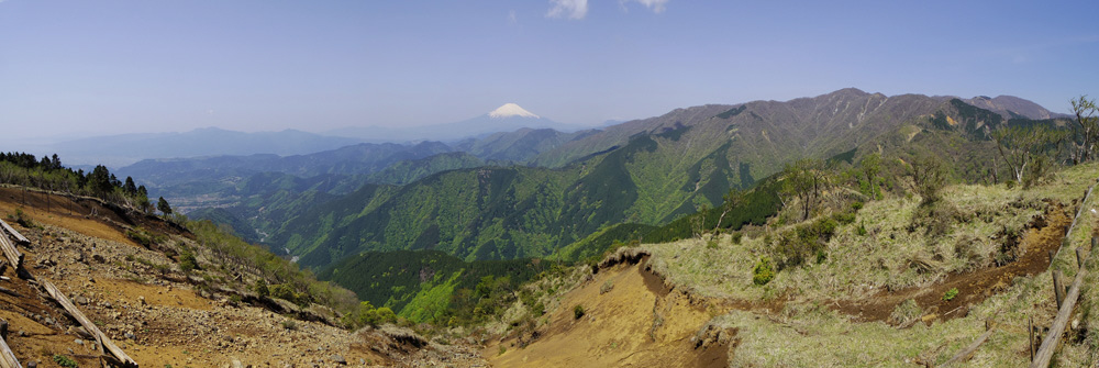 ■三ノ塔山頂からの富士山がいる大展望、5月。 (2014.5.10 9:56) 富士山の中央から右側に丹沢の山々、左側は愛鷹山、箱根の山、相模湾と続きます。絶景です。 これから進む烏尾山、行者ヶ岳、新大日、塔ノ岳の表尾根コースが右側に見えます。塔ノ岳の左に大倉尾根コースが見えます。詳細は拡大図、山座同定の画面で。 ■三ノ塔からの富士山がいる大展望、11月。 (2013.11.19 10:52) 到着に合わせて雲がなくなっていきました。塔ノ岳表尾根コースで最も良い富士山展望地です。絶景です。 ■三ノ塔山頂からの富士山と愛鷹山と箱根の山。 壁紙用。 (2014.5.10 10:17) ■10:53 三ノ塔からの富士山と愛鷹山。 (2013.11.19 10:53) ■10:17 三ノ塔山頂から烏尾山へ下るところからの富士山がいる大展望。三ノ塔から牛首の方へ下山するコースでも、3分ほど足を延ばして眺める価値があります。 詳細は以下のページで