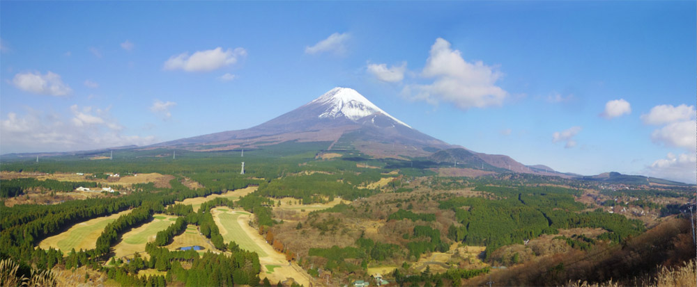 ■十里木高原展望台からの富士山がいる大展望です。(2016.12.3 9:49) 見事な丸ごと富士山です。この展望台からの富士山を眺めるのが今回の目的です。雲も多くなってきましたが富士山にはかかっていません。富士山左下に十里木カントリークラブのゴルフ場があります。人工的な前景ですが、このゴルフ場の明るい緑が、青い空と合わさって富士山を含む画面全体がとても明るく爽やかに見えます。 ■十里木高原展望台からの富士山。明るく元気が出る富士山です。(2016.12.3 9:49) ■十里木高原展望台からの富士山と宝永火口と宝永山。(2016.12.3 9:49) 宝永大噴火は、江戸時代中期の1707年(宝永4年)に起きました。富士山の噴火としては最も新しいものであるとともに、記録が残されている10回の中でも最大のものとされる。現在2025年ですので318年噴火がおこっていないので、いつ起こっても不思議ではないと言われています。展望台から見る宝永火口の横幅はほぼ1.1㎞です ■馬の背展望台からの富士山がいる大展望です。(2012.01.09 10:07) 富士山の中腹に雲がかかっていますが、ほぼ全容を見ることができました。 ここまで登ると、富士山の右裾野の奥に御正体山などの山並みが見えています。私もじっくり眺めています。 ![]() がいる大展望。右から箱根神山、富士山、愛鷹連峰。その先に駿河湾があり、沼津アルプス、大瀬崎が見えます。(2016.1.20 10:57) 地図でもわかるように、黒岳からの景観は、十国峠からの景観とほぼ同じです。詳しい山座同定は十国峠からの山座同定を見てください。 ■越前岳からの富士山(2009..03.15 11:05) 雲のない時でも、見えるのは山頂付近だけです。少し樹木を伐採すれば、越前岳山頂も素晴らしい富士山展望地になると思いますが、十里木高原展望台、馬の背見晴台で丸ごと富士山の展望を見ることができるので、山頂はこのぐらいで十分としてるようです。現在も山頂の樹木の伐採は行われていないようです。十里木高原展望台は残っています。 ![]() ■富士見台からの富士山。 (2009.03.15 12:15) 岡田紅陽がこの富士見台から撮影した富士山が、昭和13年発行の五拾銭札紙幣に使われています。 ![]() ■2009年は富士見峠から黒岳展望広場まで行き宝永火口がほぼに中央にある富士山を眺めた。(2009.03.15 12:15) ![]() ■2009年の十里木高原展望台からの富士山がいる大展望です。(2009.03.15 12:15) この時眺めた十里木高原展望台から眺めた富士山に感動して、その後2回来ることになった。今回より冠雪は多く、雲は少ない。この時は3月なのに緑が少ない、カメラの設定の違いか。 ![]() 詳細はこちらでご覧ください ![]() ■十里木からの最短コースで登る雪の越前岳 サイト「夫婦でのんびり日帰り登山」の「夫婦日帰り登山|越前岳2」 ■越前岳から赤富士を眺める サイト[山あっとらんだむ」の「越前岳」 ■須山愛鷹登山口から富士見台、越前岳、十里木高原展望台、十里木駐車場のコース サイト「YamaReco」の「越前岳(愛鷹山) |