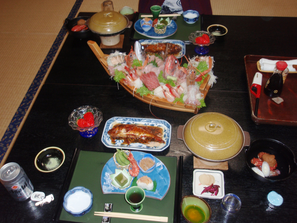 ■18:37 網元の宿「清進丸」新鮮な魚介類がとてもおいしく満足。2009年であるが、これで10500円とは驚きの安さ。