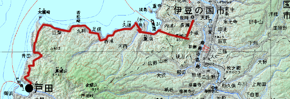 戸田から海岸線を歩き、発端丈山、葛城山を歩く |